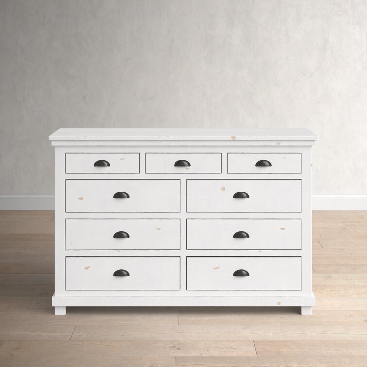 Why not bring home a piece of furniture that's as pretty as it is practical? Like this dresser that��s practically made for your family home: crafted by skilled artisans from solid pinewood, this chest is built with traditional crown moldings and removable cup-pull hardware that give it all the charm of a flea-market find. When it comes to storage space, nine deep drawers allow friends and family to stash away clothes and essentials so they can make the most of any space. And we love how this piece comes in multiple colors so you can choose the one that works best for your humble abode. You can enjoy peace of mind since it includes a wall attachment to prevent tipping, which is especially useful if you have little ones.