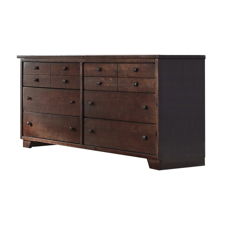 This 6-drawer double dresser completes your bedroom with classic style and a rustic touch. It's made from solid and engineered wood with a natural finish that highlights its natural wood grain. A horizontal construction provides ample space for six drawers that let you tuck away everything from clothes and bedding to linens and bedroom essentials. We love that this piece has a weathered finish for an antique-inspired look. It also comes with a wall anchor to keep it secure in your space. Best of all, this piece arrives at your door ready to use.