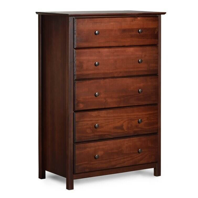 Attractive metal knobs, and elegant Shaker style: this luxurious-looking chest has what it takes to give your bedroom that refined touch. Made of 100% Solid Pinewood, this chest features a sturdy construction that can last for years. Featuring an eco-friendly design, this piece has minimal impact on the environment as all wood comes from renewable forests.