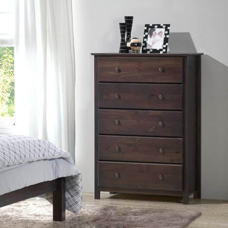 - Its modernized traditional style creates timeless decor while adding lots of storage with five spacious drawers.
