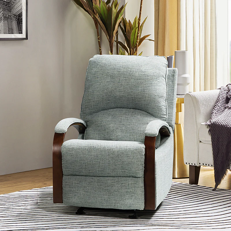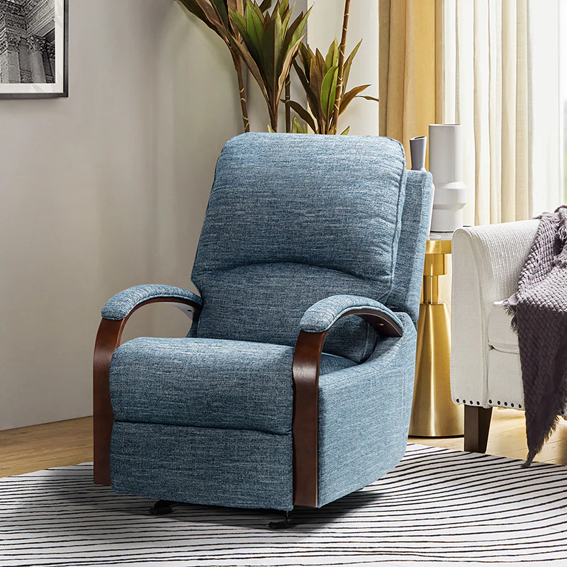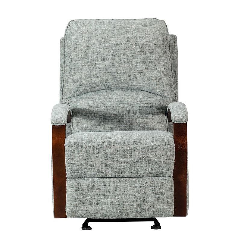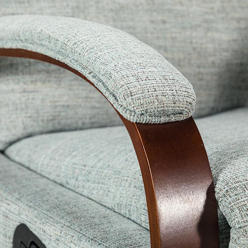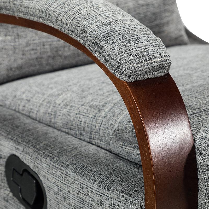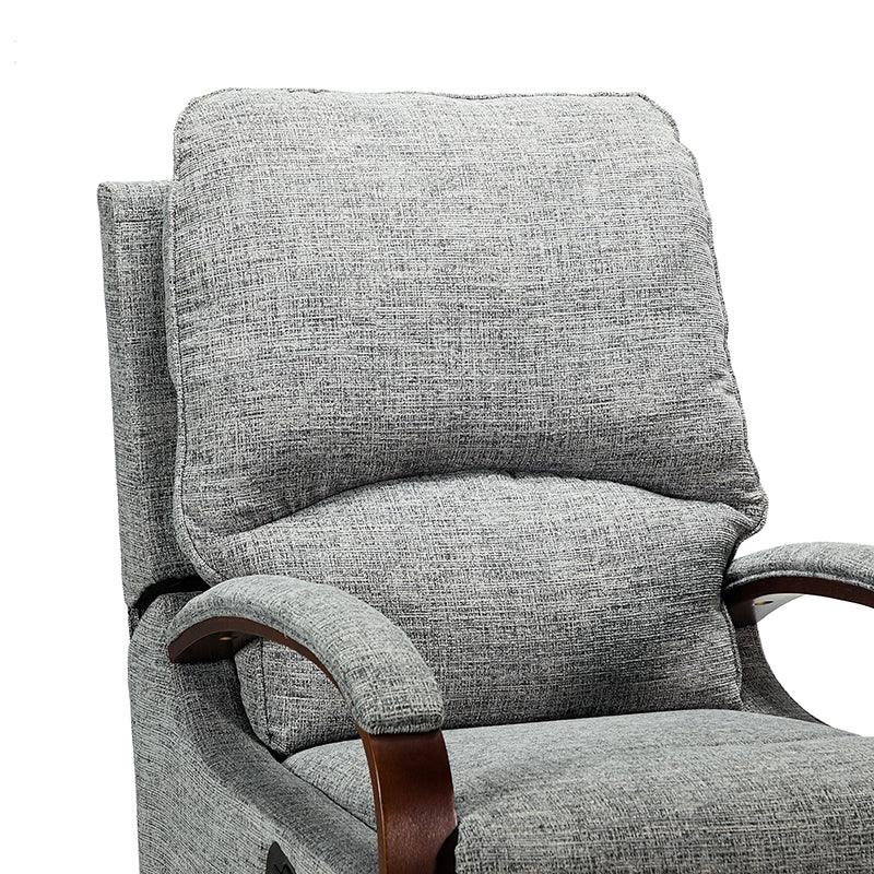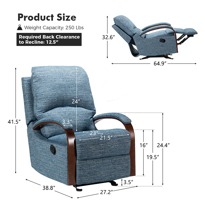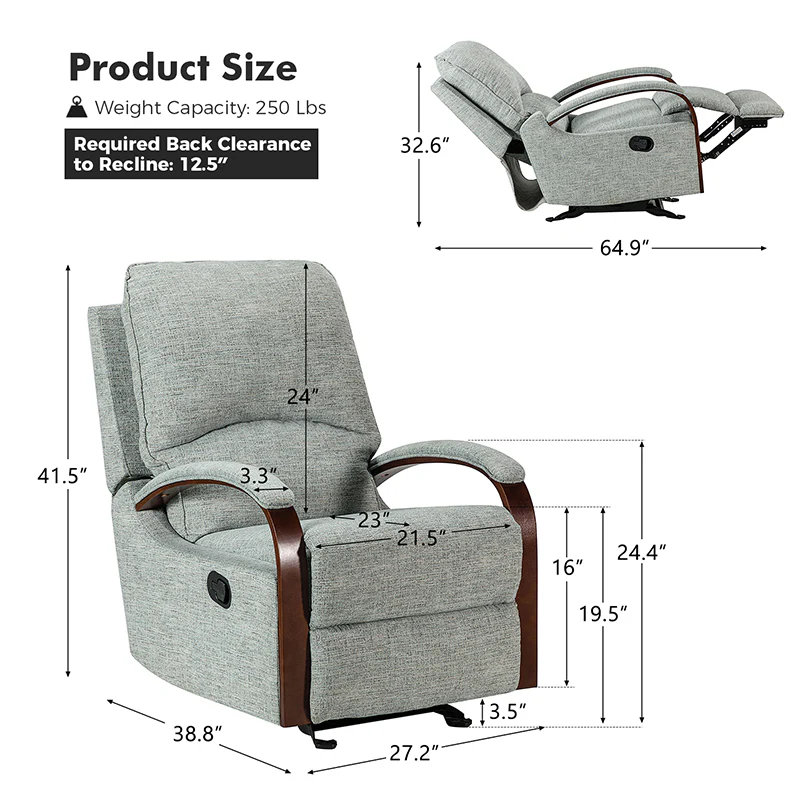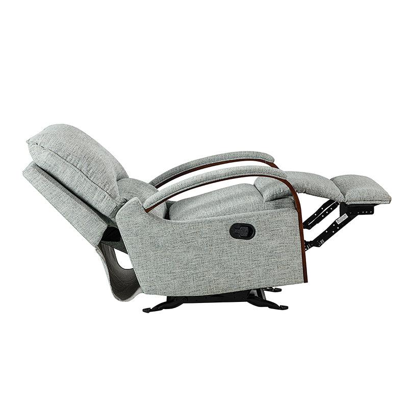When it comes to elevating your living room look or accenting the master suite, this modern rocking recliner is the perfect spot to unwind. With a soft cushion padded backrest, this stylish manual-adjusted recliner comes with a thick foam and polypropylene cotton-filled frame that exudes ease and comfort when both upright and in the reclining position. Crafted from solid and manufactured wood while offering several understated colors to suit your different home styles effortlessly, this nursery chair shows a modern appearance for simple yet fashionable charm in any living room. It's polyester fabric wrapped and features a sturdy metal rocking base with a built-in pocket spring that provides excellent support capacity. Cooperate with the hidden footrest, you can simply lie down on it to rock yourself in a hypnotic relaxation after a long day of work, perfect for the living room, media, and master bedrooms.
