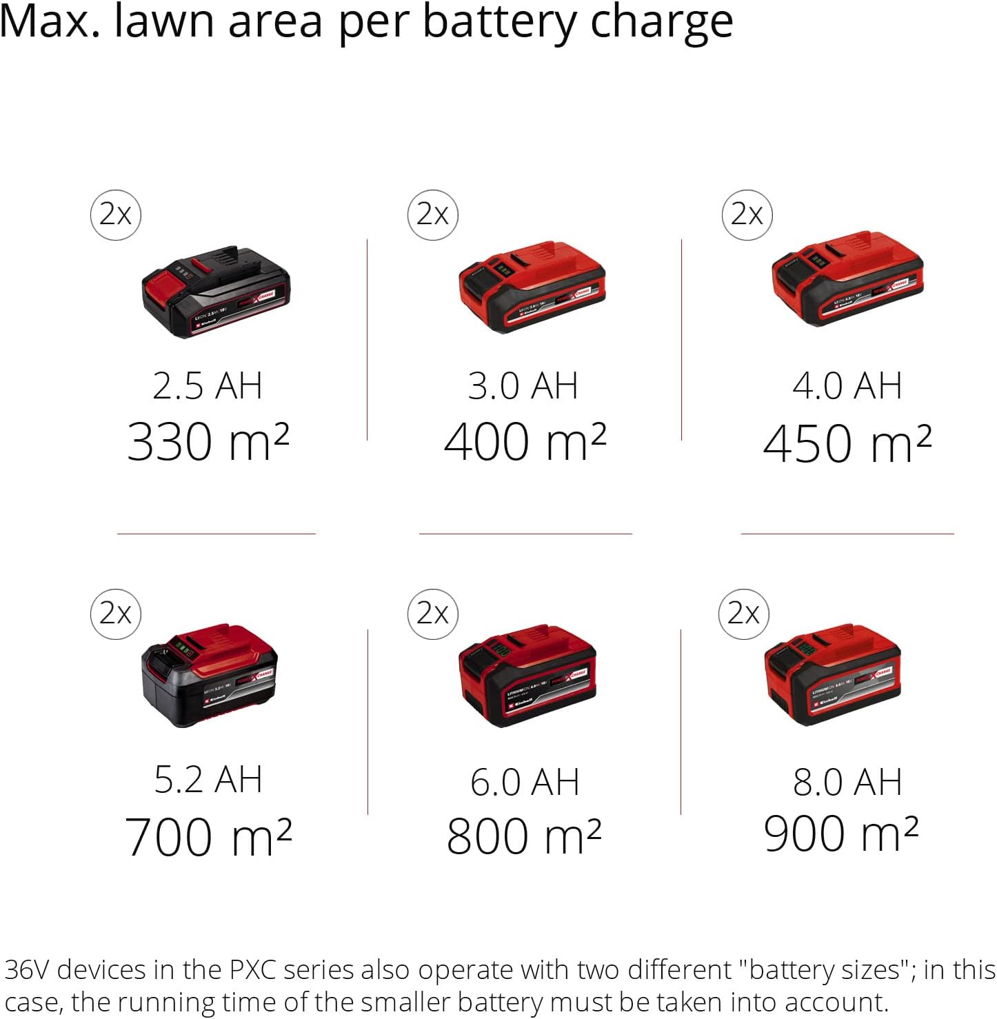 The Einhell Rasarro 36/38 cordless lawn mower works powerfully and wirelessly through the green - at every angle of the garden