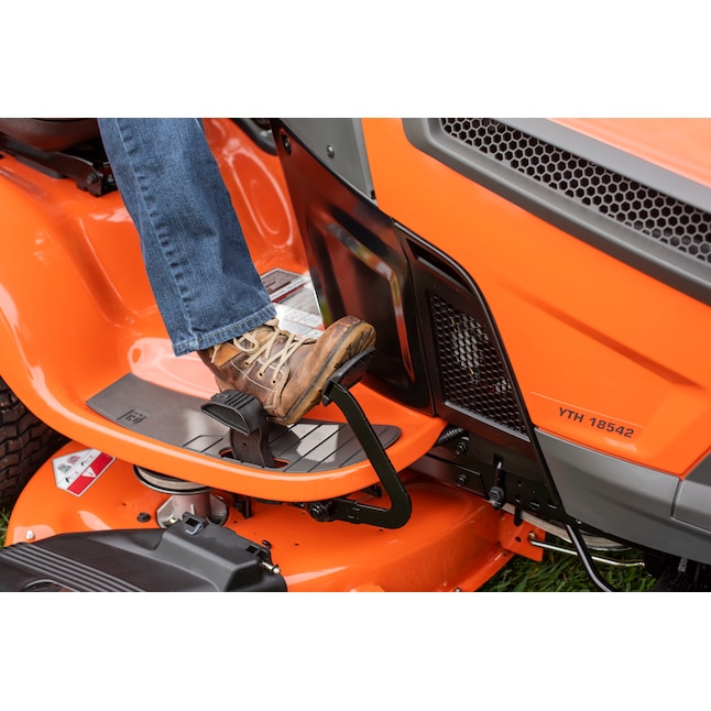 The stamped cutting deck is reinforced with heavy flat-stock steel for added strength and durability on the leading edge and trim side.