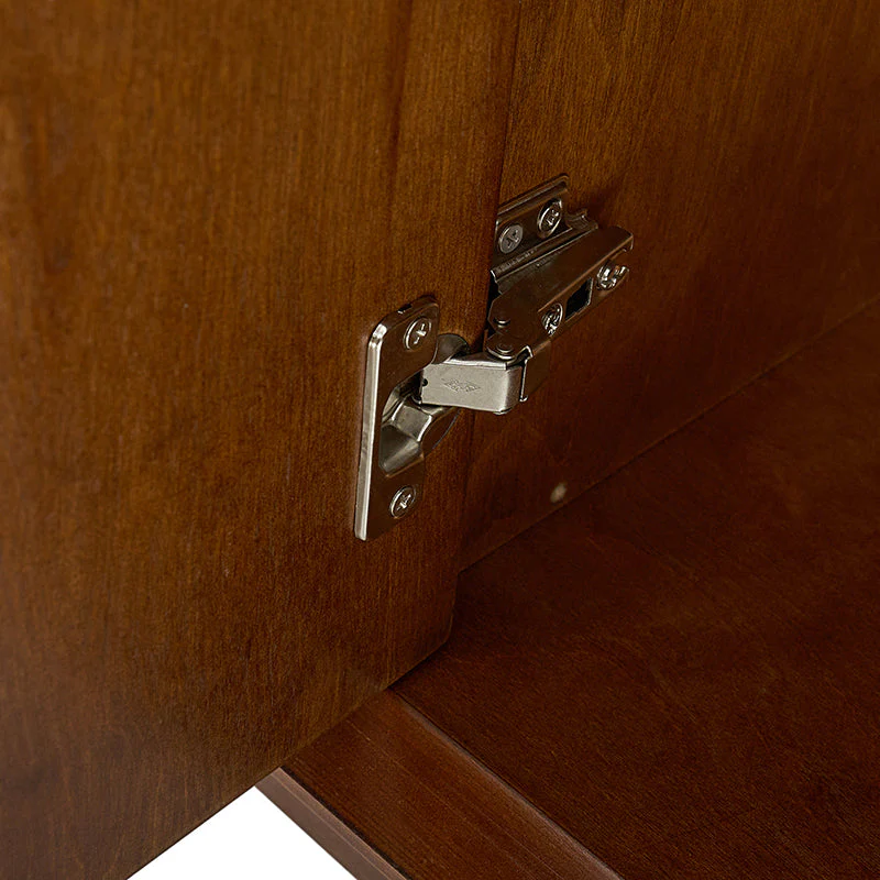 This mid-century style sideboard features a sleek design with doors adorned with diamond-shaped patterns, elevating the visual appeal. Finished with a smooth coat of paint, it exudes a modern yet classic appeal. Inside, adjustable shelves offer versatile storage options, allowing you to customize the space according to your needs. Whether it's displaying your favorite decor pieces or organizing dinnerware, this sideboard provides ample room while maintaining a clean and minimalist look. The sturdy structure ensures durability and stability, promoting easy assembly to make it convenient for anyone to set up without hassle. Whether placed in a dining room, living area, or hallway, this 4-door sideboard rests on slightly splayed solid wood legs for a mid-century silhouette and works well in your entryway as a catch-all for keys or other items.