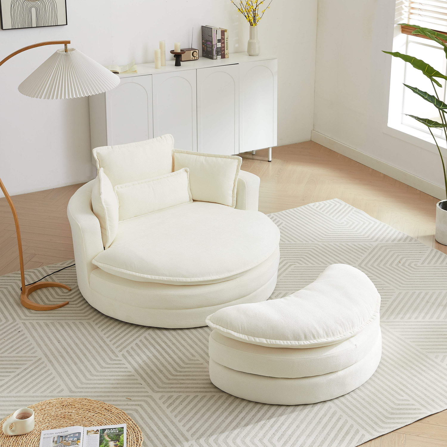 - Modern swivel chair: Upholstered modern sofa chair design made of soft fabric, single chair can rotate.