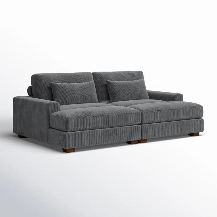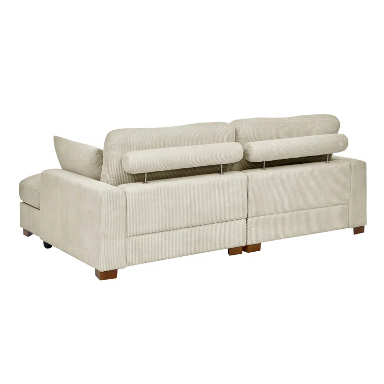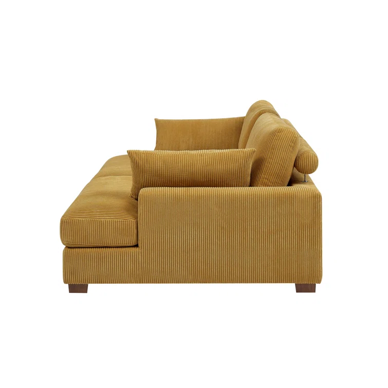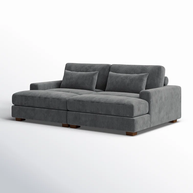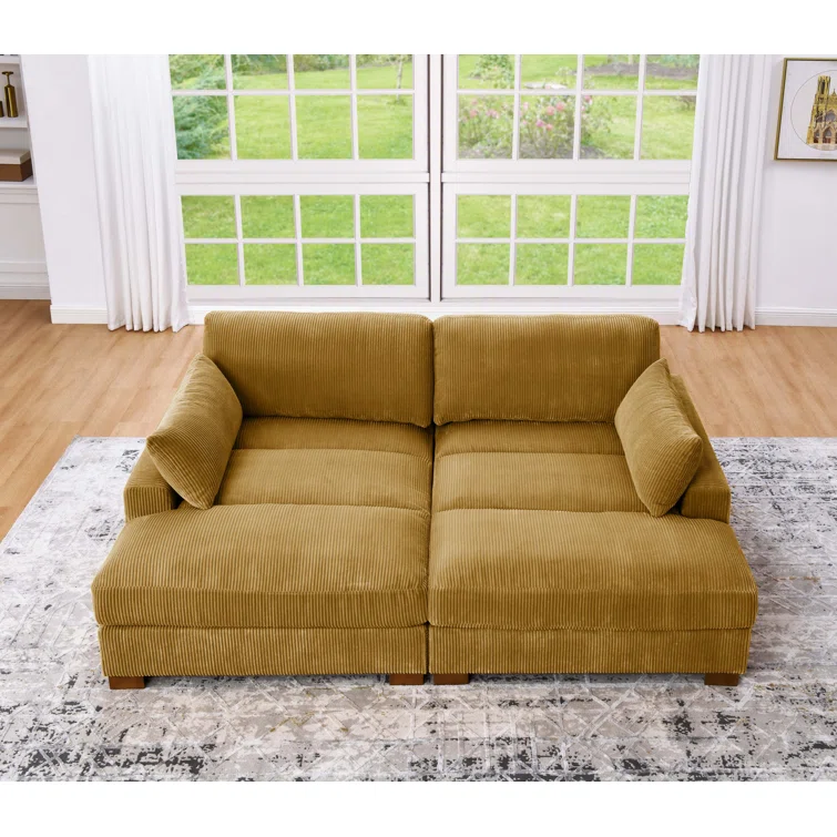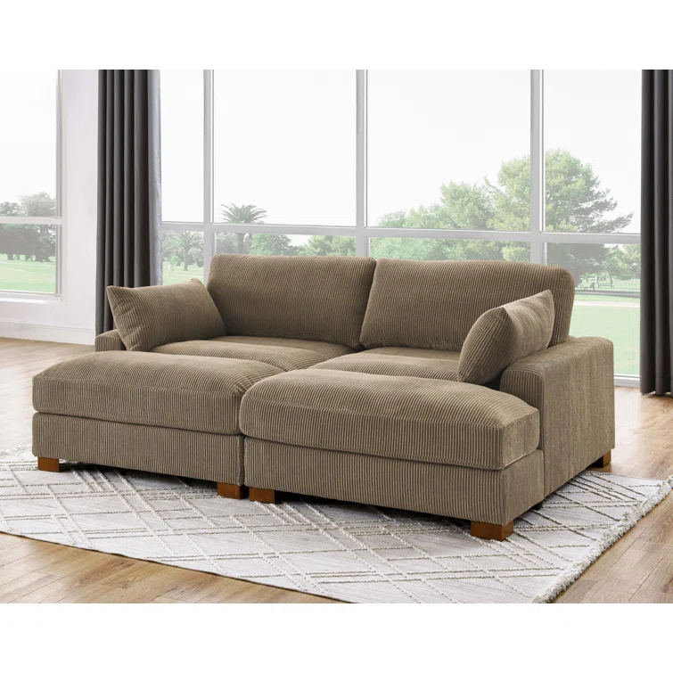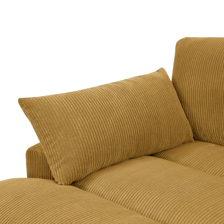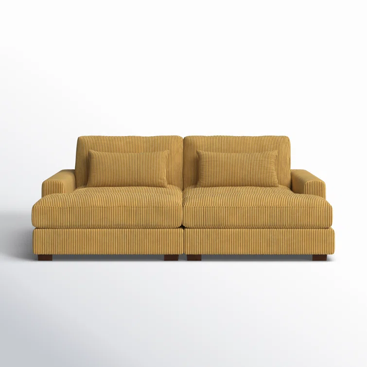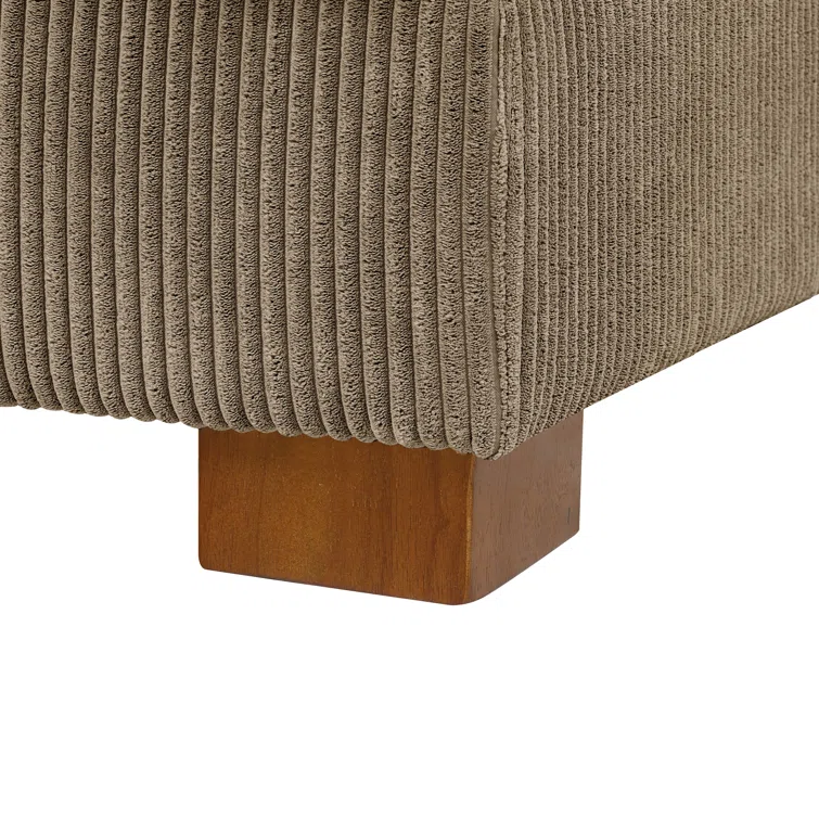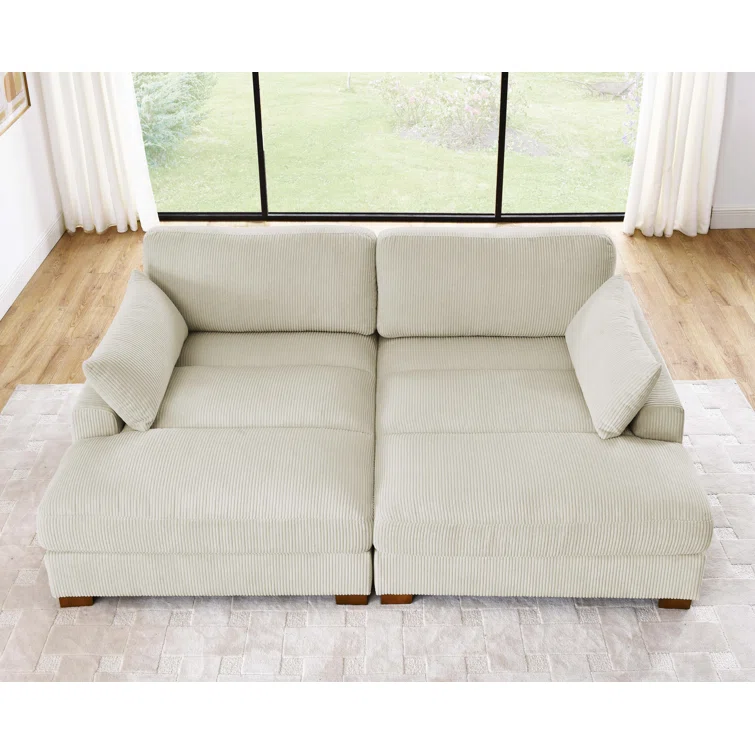 This convertible sofa brings spare sleeping space and glam style to your living room. Designed to seat two as a couch, it converts into a twin-sized bed that's just right for overnight guests. It's crafted with an engineered wood frame, and it sits on solid wood block feet with a brown finish. This sofa is wrapped in corduroy upholstery in a neutral hue, and its cushions are filled with foam and supported by coil springs to help prevent sagging over time. This sleeper sofa features square arms, a cushion back, and includes two toss pillows for an instantly curated look.