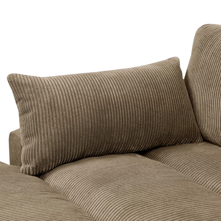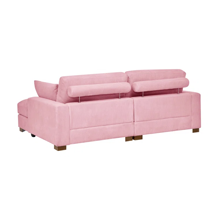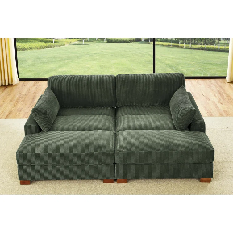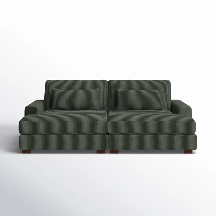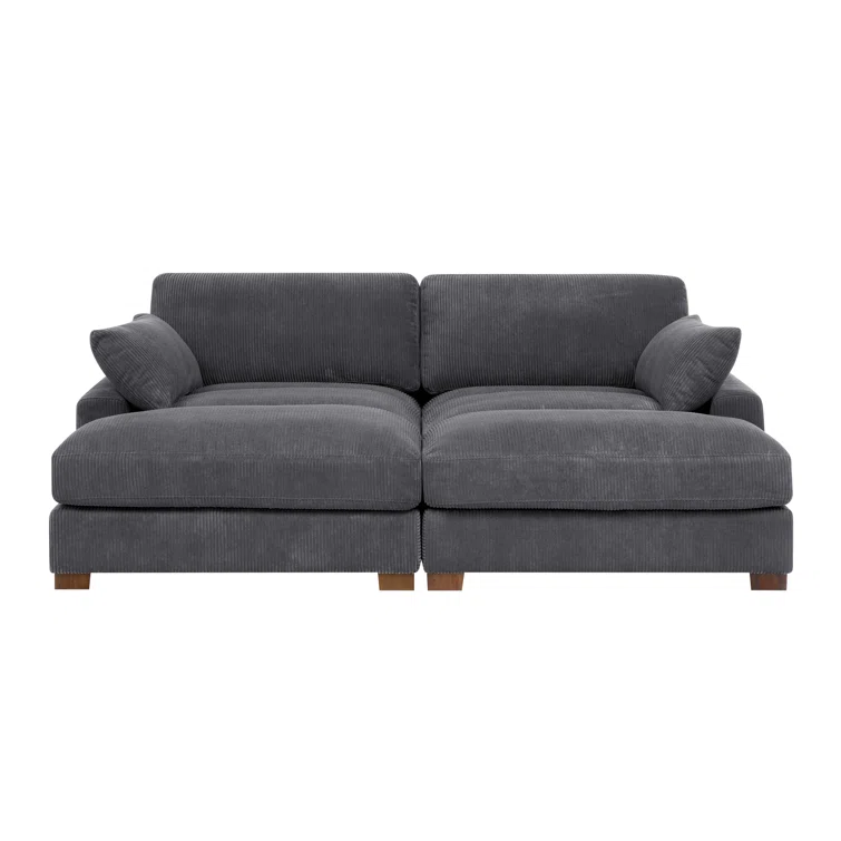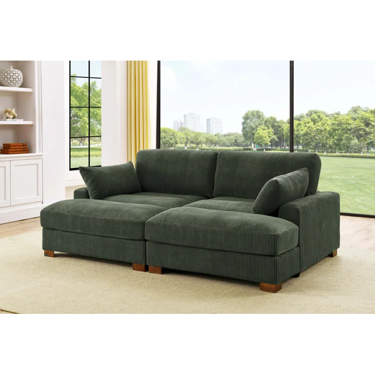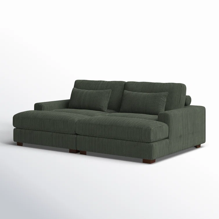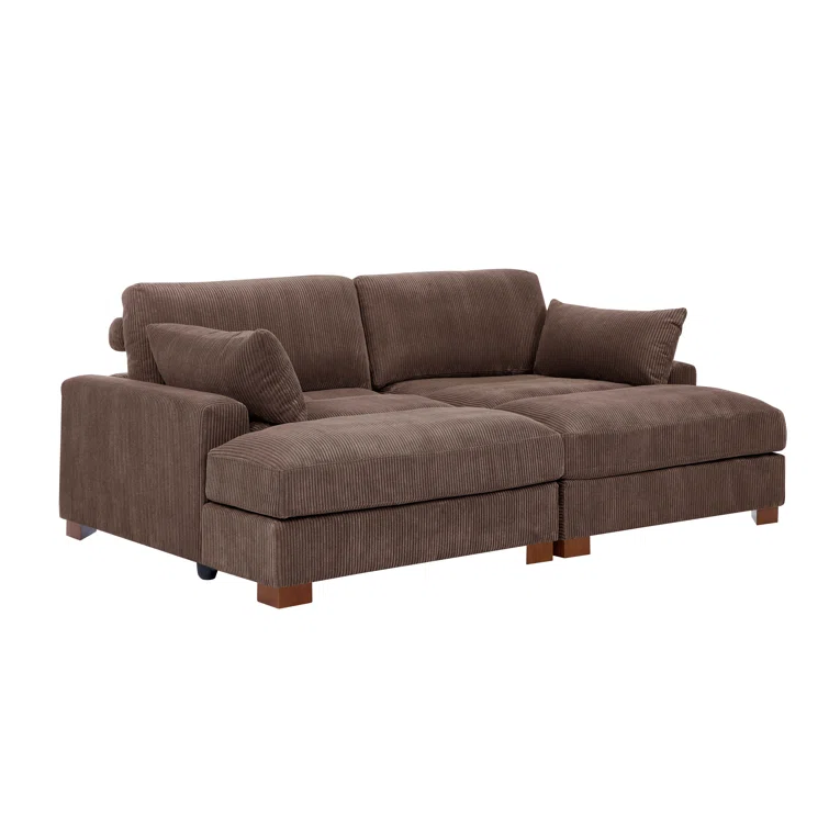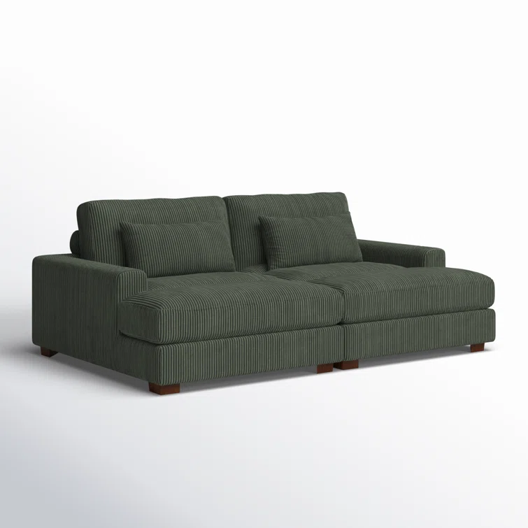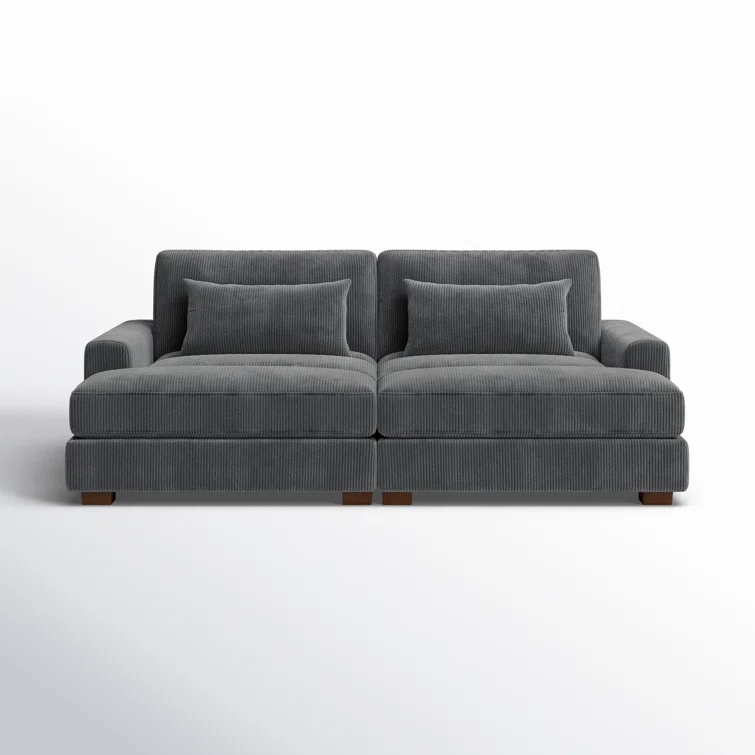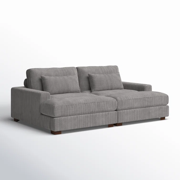 This convertible sofa brings spare sleeping space and glam style to your living room. Designed to seat two as a couch, it converts into a twin-sized bed that's just right for overnight guests. It's crafted with an engineered wood frame, and it sits on solid wood block feet with a brown finish. This sofa is wrapped in corduroy upholstery in a neutral hue, and its cushions are filled with foam and supported by coil springs to help prevent sagging over time. This sleeper sofa features square arms, a cushion back, and includes two toss pillows for an instantly curated look.