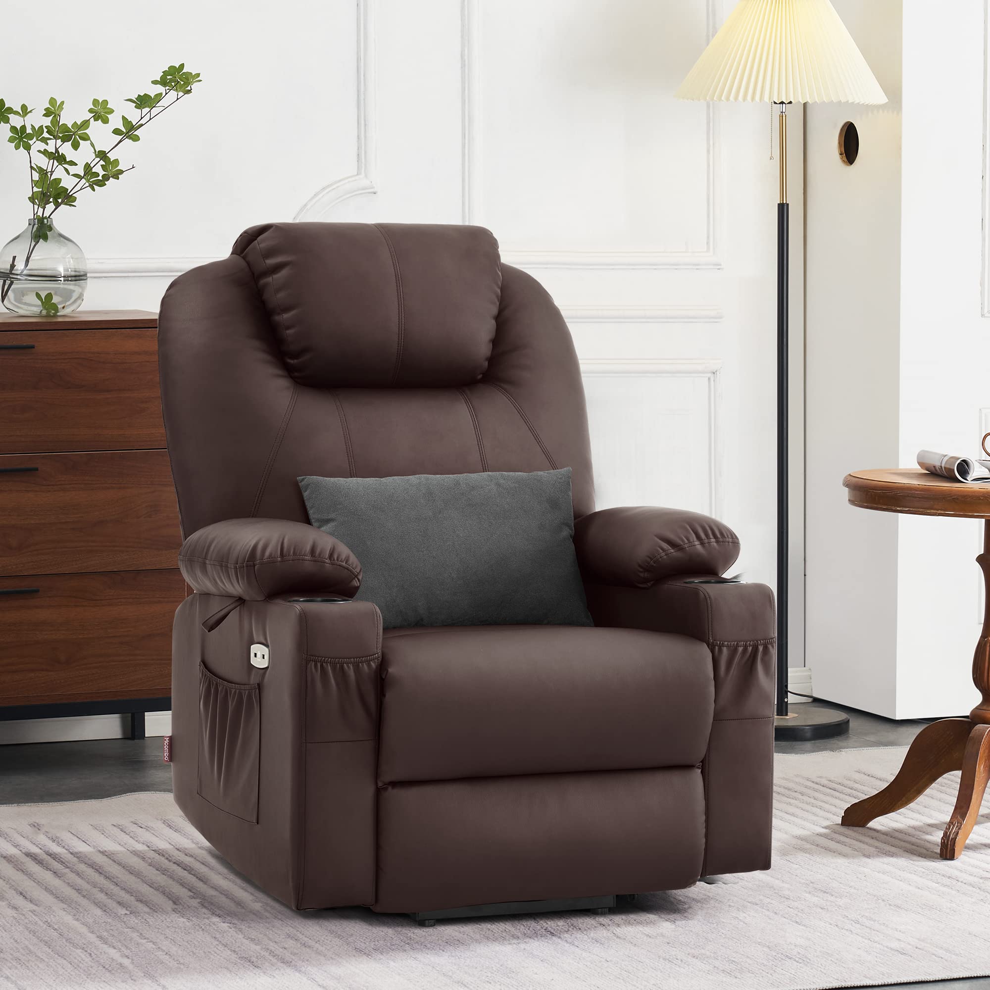 MCombo Large Lay Flat Dual Motor Power Lift Recliner Chair Sofa with Massage and Heat, USB Ports, Cup Holders, Extended Footrest!