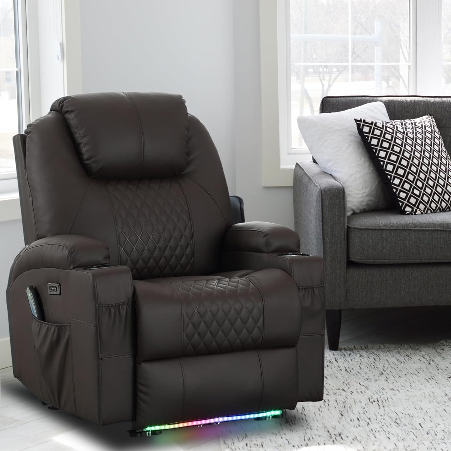 - POWER RECLINER CHAIR: Experience ultimate comfort with our electric recliner chairs featuring a smooth, silent power motor that adjusts effortlessly from 95 to 160 degrees at the touch of a button. Crafted with faux leather recliner chair, it offers a supremely comfortable sitting experience complemented by a classic wingback design that adds elegance to any room. Ideal for reading, movie-watching, or napping, this versatile oversized recliner chair provides personalized comfort for adults, seniors, individuals with mobility issues, and expectant mothers alike