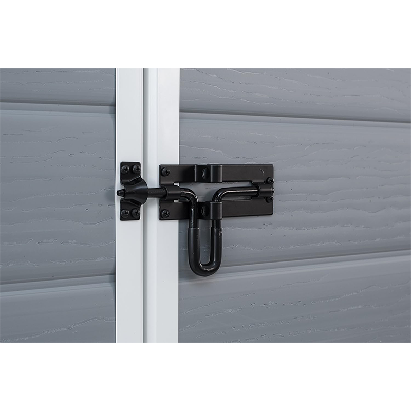 The spacious Manor 6x8 shed makes organizing your outdoor space easy and attractive. Combining low maintenance needs with walls that give the plastic the look of wood, it features lockable double doors that allow easy access to your items, floor panels to keep your belongings clean and dry, fixed windows that let daylight in, and vents that provide ample ventilation, as well as a high ceiling for freedom of movement. Assembly is quick and easy, just as you expect.