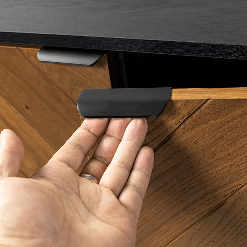 Elevate your space with the introduction of the stylish storage solution embodied in the exquisite 3-door sideboard for multiple scenarios. Meticulously crafted with a contemporary-inspired design, this sideboard built on black metal legs effortlessly harmonizes functionality and aesthetics, offering a seamless fusion. As the 3 doors gracefully swing open, a world of ample storage space unfolds, ensuring an organized sanctuary for your cherished belongings. Inside, the adjustable shelf provides effortless customization, enabling you to arrange items with ease. Prepare to be mesmerized by the sideboard's captivating design, adorned with a stunning herringbone pattern that exudes a touch of industrial texture. Whether gracing your dining area, living room, or hallway, this remarkable 3-door sideboard is apt to enrich your home decor with its undeniable presence.