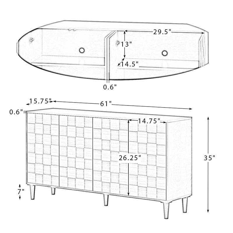 A combination of classic and up-to-date design, this sideboard maintains the casual feel of today's lifestyle. Its frame is made of manufactured wood with sleek lines and rich finishes showcasing craftsmanship, while the lattice design of the sideboard face proves its style. This sideboard has interior shelves for storing various sizes of essentials or miscellaneous items as needed, providing you with plenty of hidden storage space. Its legs are made of manufactured wood for durability. The legs come with adjustable pads that can be adjusted as needed to balance the sideboard. The sideboard can meet your various storage needs and is ideal as a way to decorate your living space. The simple design fits a variety of styles of home decor.