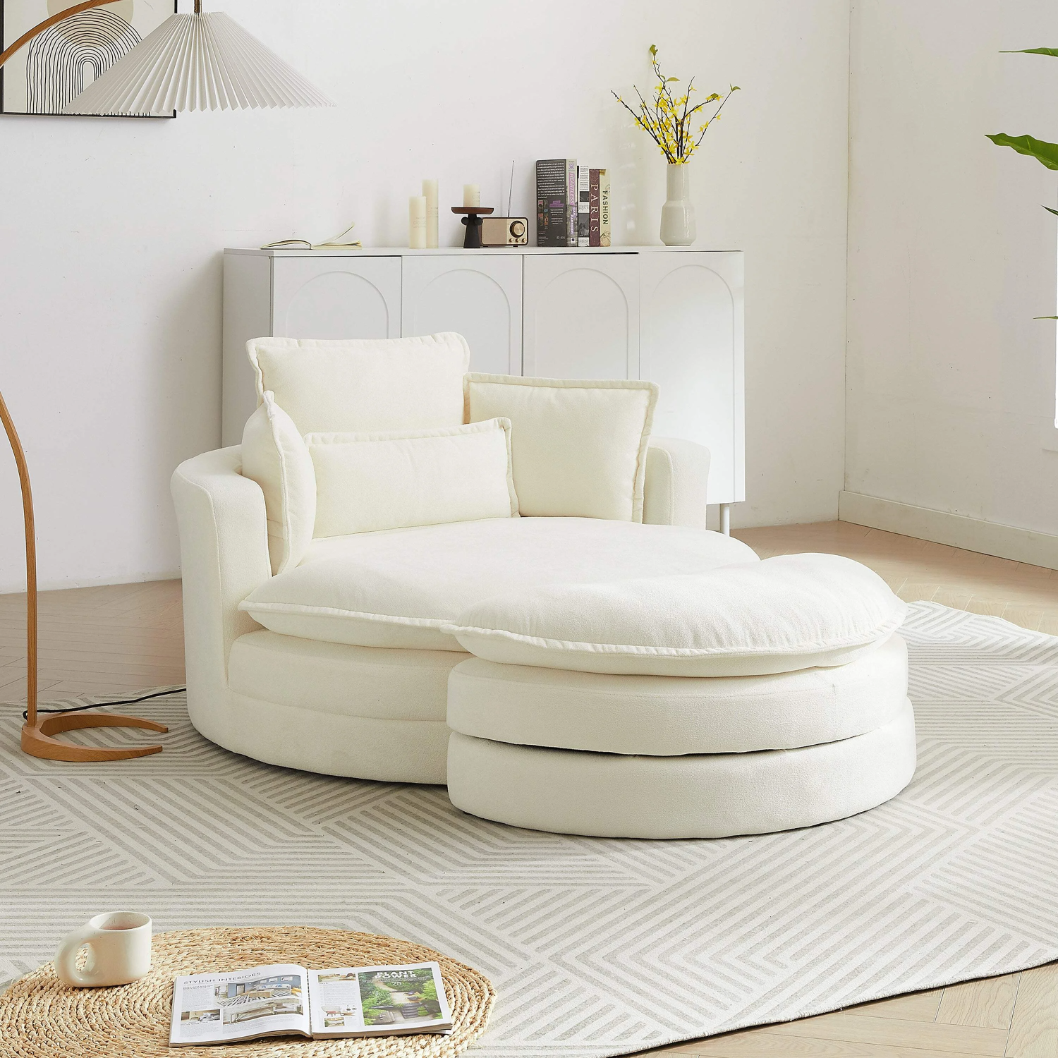 - Modern swivel chair: Upholstered modern sofa chair design made of soft fabric, single chair can rotate.