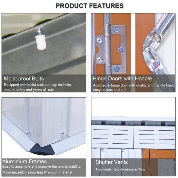 [Robust Construction] Nothing irks a garden hobbyist more than the sight of a collapsed shed. Luckily, this shed utilizes sui generis aluminum frames which greatly increase the overall sturdiness. On top of that, the galvanized steel panels, coated with eco-friendly painting, can endure harsh weather for at least 10 years.