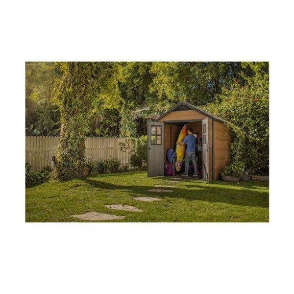 It��s all about organization with the Newton shed by Keter. It��s spacious enough to set up shelving units for even more storage, allowing you to organize camping supplies, canned goods and seasonal items. It has the look and feel of natural wood but crafted with a resin construction that never fades, rots, or rusts. It��s easy to clean and assemble and holds up well to extreme weather. For long-lasting storage, durability and style, the Newton provides it all.