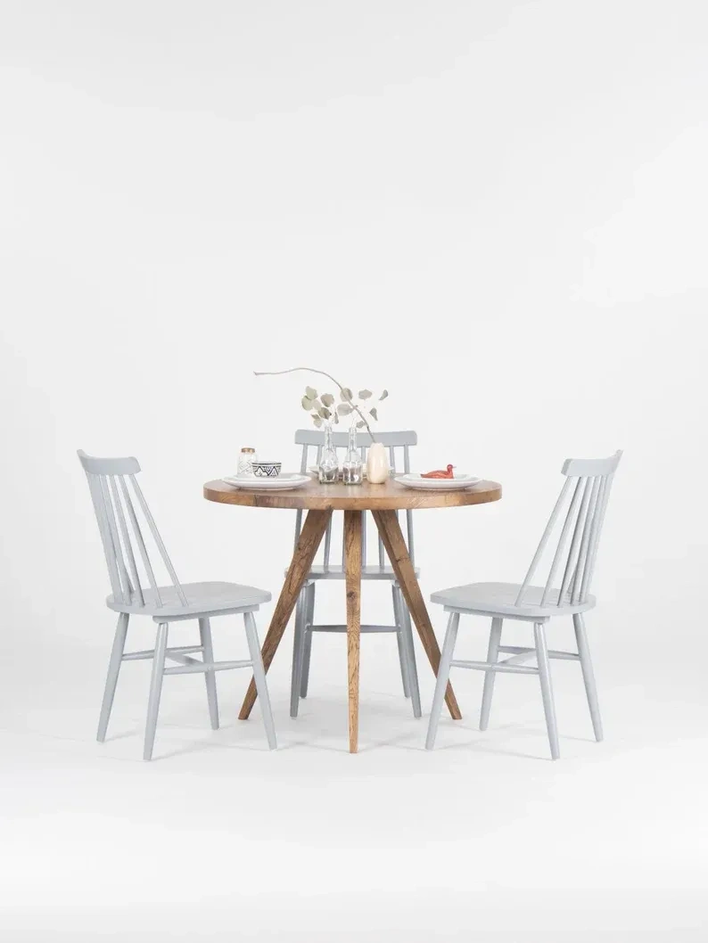 Reclaimed round dining table, rustic kitchen table, made of solid oak wood;Send 3 stool(pictured)