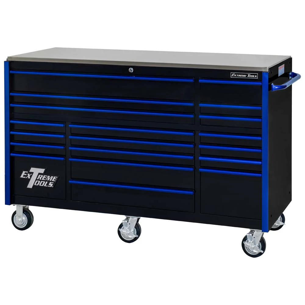 Extreme Tools RX Series 72” 19 Drawer Professional Triple Bank Roller Cabinet