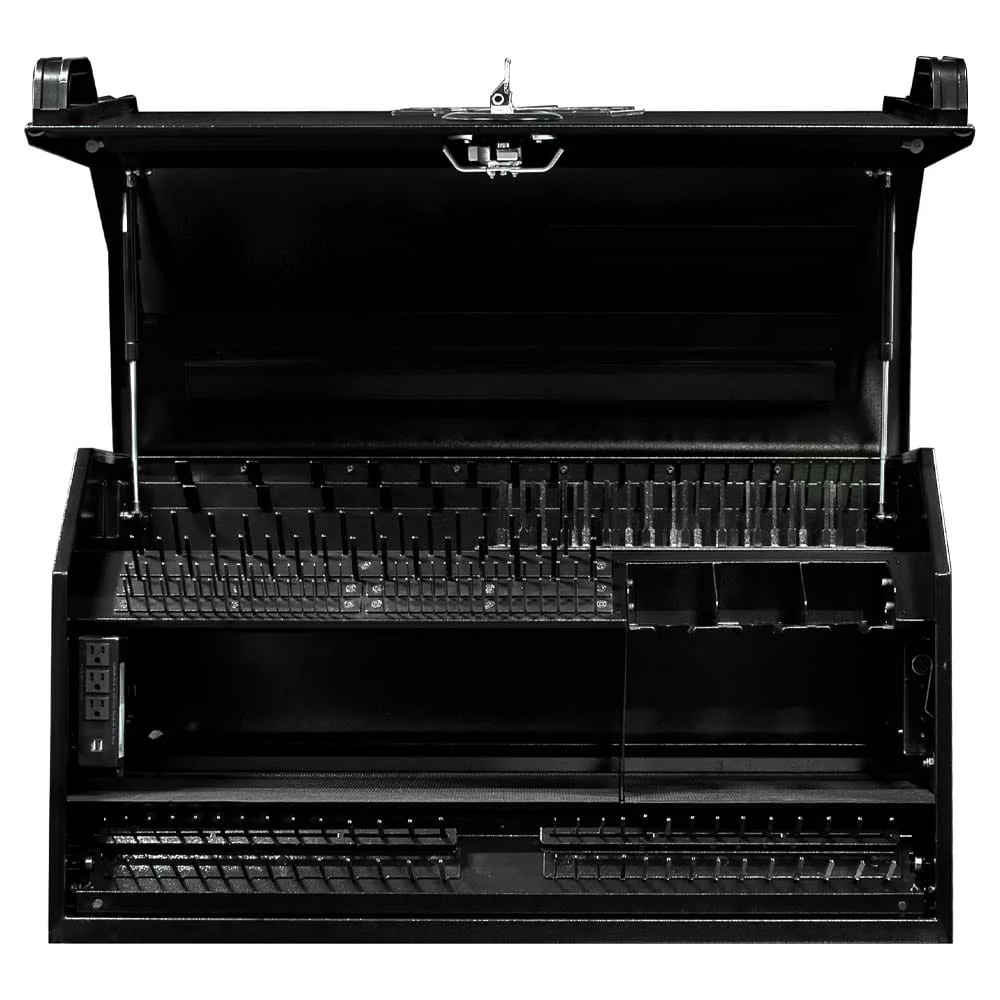 46 in. W x 24.5 in. D 9-Drawer Gloss Black Deep Tool Chest Mobile Workbench with Hardwood Top and Power Station
